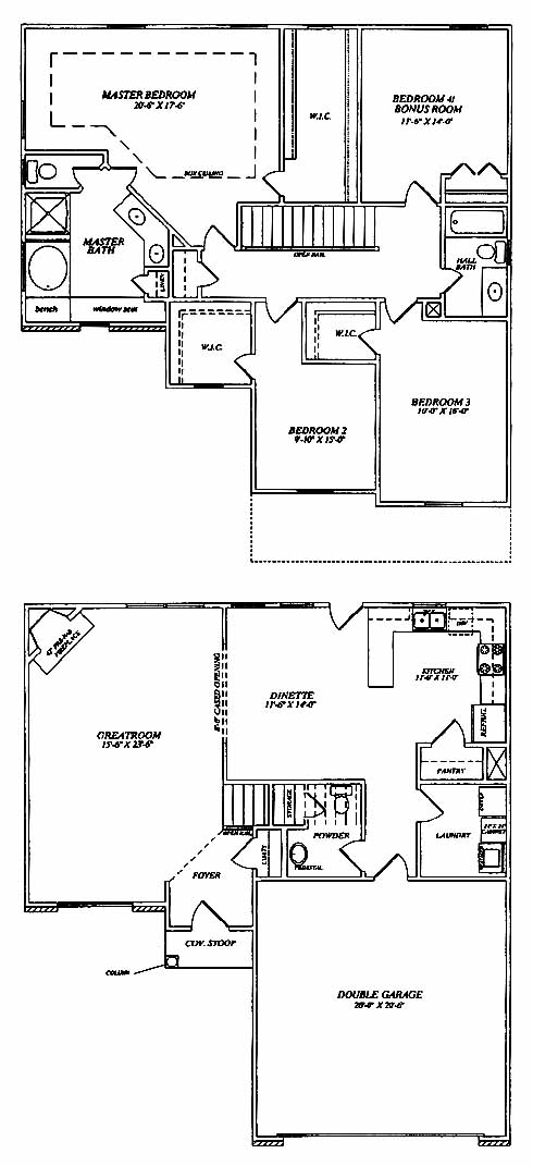 Spacious great room at the foyer entrance includes a fireplace where you can entertain guests. The kitchen in the back includes a pantry and wrap-around counter that overlooks the dinette area. The second-floor master bedroom includes an oversized walk-in closet and luxurious master bath with double vanity, soaking tub, window seat and a separate shower. Two more bedrooms share a bath. The bonus room makes a nice fourth bedroom if needed.