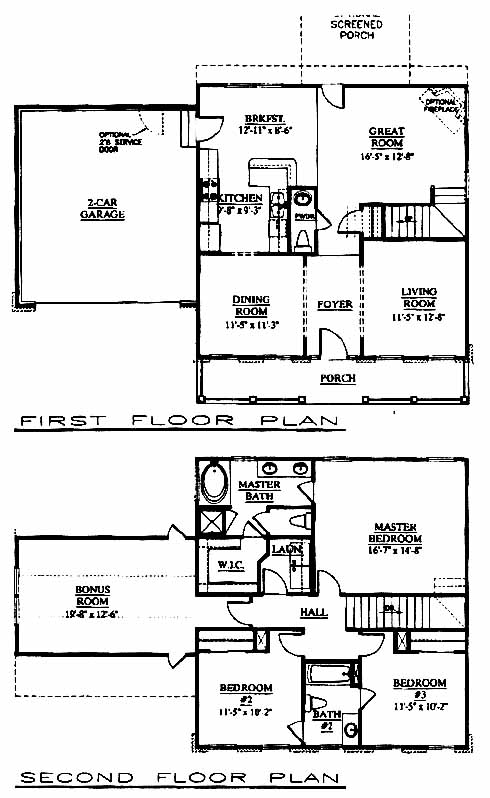 Two-story home featuring a large great room in the back that includes access to the optional screened porch. The kitchen has ample counterspace for preparing meals while overlooking the breakfast room. Formal dining and living rooms are located at the front of the home. The second floor has two bedrooms that share a Jack-n-Jill bath. The master bedroom includes a walk-in closet and master bath with double vanity, tub and separate shower. A large bonus room makes a great home office, media center or fitness area.