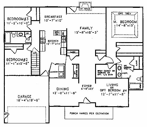 This split plan features a large master suite with walk-in closet and master bath. Two more bedrooms share a bath on the opposite side of the home. Living and dining rooms are located on either side of the foyer entrance. Relax in the family room near the optional fireplace. The kitchen has a pantry and ample counterspace for preparing meals while opening into the breakfast room.