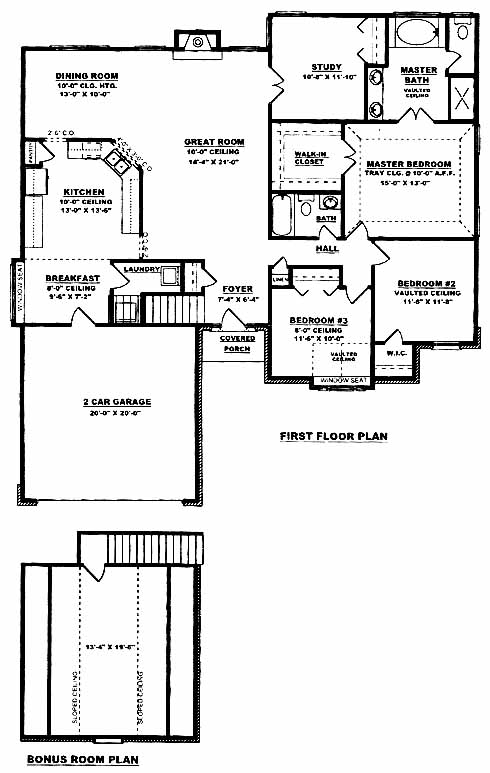 Ranch style home with all three bedrooms to one side of the foyer, including the master with tray ceiling, walk-in closet and master bath with double vanity and soaking tub. The study in the back makes a nice home office or library. The kitchen has ample counterspace for preparing meals, a pantry and a pass-thru to the great room. The breakfast room has a charming window seat. The dining room overlooks the great room with fireplace. Second-floor bonus room makes a nice fitness area or game room for the kids.