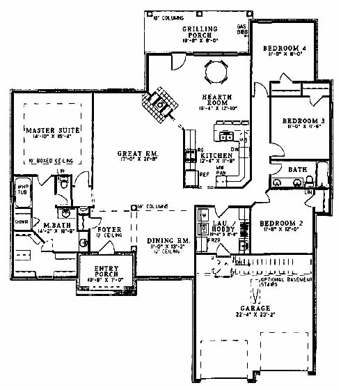 Split plan with large mastger suite that includes a boxed ceiling, an oversized walk-in closet and a master bath with dual vanities, shower and whirlpool tub. Three more bedrooms and a bath are located on the opposite side of the home. Formal dining room is located to one side of the foyer. The great room is separated from the hearth room by a two-way fireplace. Access the grilling porch from the hearth room as well. The kitchen includes an eat-in area, pantry and ample counterspace for preparing meals.