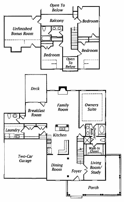 This home includes living and dining rooms to either side of the foyer entrance. Continuing from the dining room is the kitchen with island workspace that includes a double sink and overlooks the family room with fireplace. Plenty of storage to one side of the kitchen leads you to the laundry room. Further up is the breakfast room with access to a deck outside. The owner's suite includes a private bath with double vanity and a walk-in closet. The second floor has three more bedrooms, a bath and balcony area with views of the family room below.