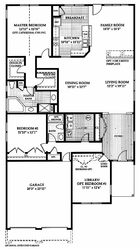 This home has a library at the front of the home that makes a nice office. The living and dining room creates an open feel to the design. The family room in the back has ample space for everyone to gather when entertaining guests. The kitchen has a pantry and breakfast area. The master suite includes his and her walk-in closets and luxurious private bath with soaking tub and shower with seat. The second bedroom is close to the laundry room.