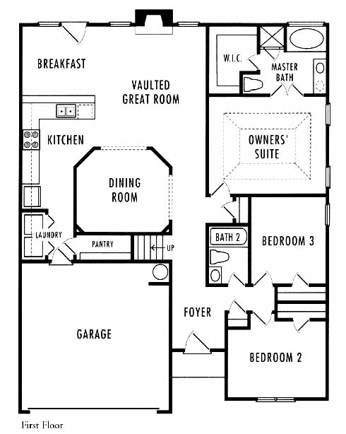 This home has access to two bedrooms on one side of the foyer. The owner's suite has a tray ceiling, a walk-in closet and private bath with tub and separate shower. The kitchen includes ample counterspace, a walk-in pantry and leads to the formal dining room. The great room includes a fireplace and vaulted ceiling. The breakfast area has access to the back yard.