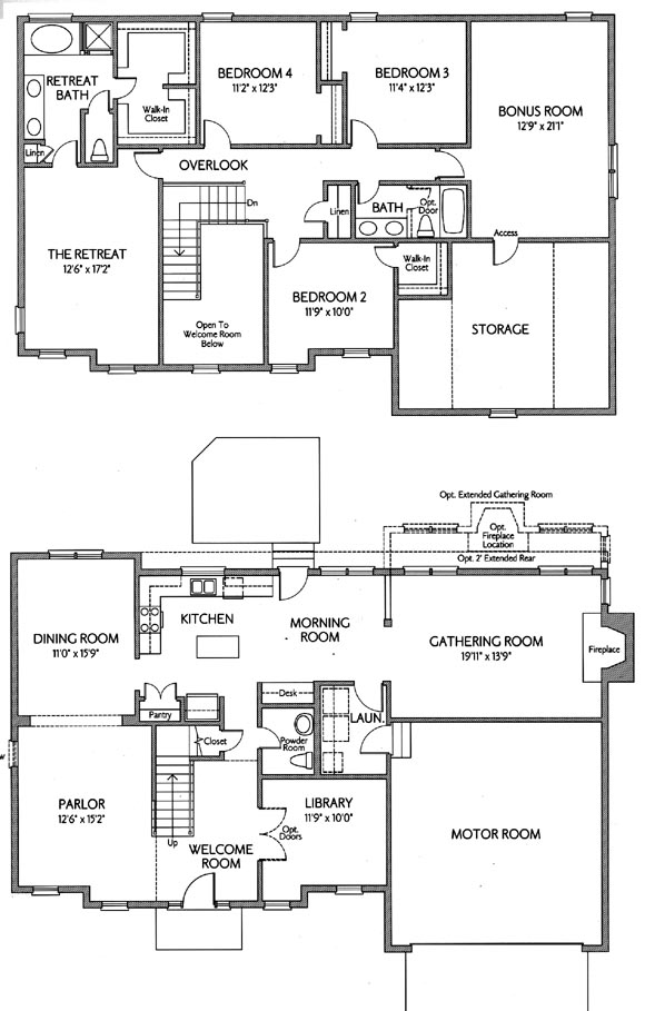This has a classic parlor, private library, two-story welcome room, oversized great room with extension options and owner's retreat with luxurious bath and enormous walk-in closet all in the first floor. Bed, bath and bonus room upstairs.