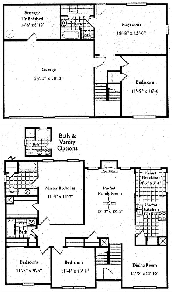 Two story home with formal dining room, large family room with fireplace and vaulted ceilings. Kitchen and breakfast room also have vaulted ceilings. Master is on the first level with large walk-in closet and spacious bath area. Two additional bedrooms and a full bath complete the first level. There is a full bath, a bedroom and a large playroom upstairs.