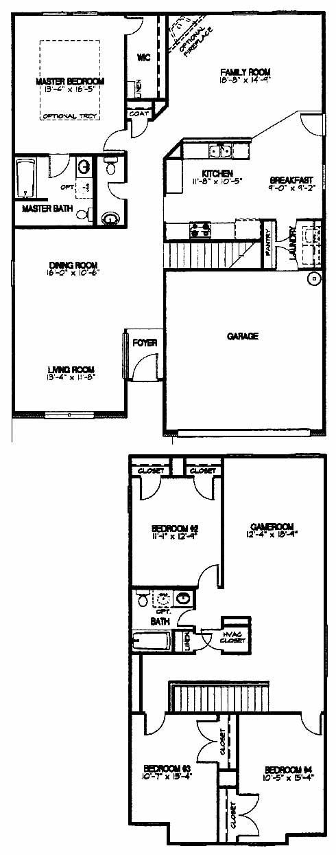The large living and dining room greet you as you enter the home. Next you'll pass the kitchen with breakfast area just before you come to the family room with optional fireplace. From here you can access the master bedroom and bath with a walk-in closet. Upstairs you'll find 3 spacious bedrooms, hall bath and the massive gameroom.