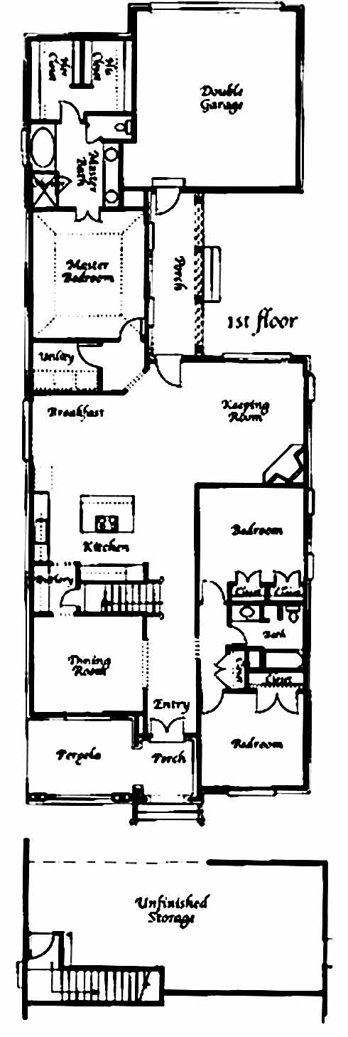 Beautiful front porch welcomes guests to the front door. The formal dining room next to the entry leads to the kitchen with island workspace. The breakfast room overlooks the keeping room with fireplace. Two bedrooms and a shared bath are located at the front, while the master bedroom is privately tucked away in the back and includes his and her closets and a private bath.