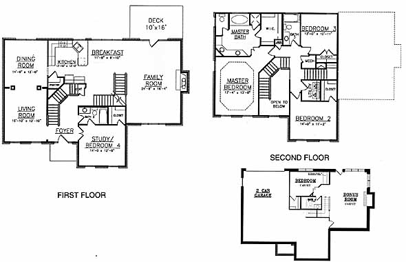 Large basement plan for the growing family. 2 story foyer, formal living and dining room, study or bedroom with full bath downstairs. Large kitchen & breakfast area adjacent to family room. Master suite is upstairs with large bath and walk-in closet. 2 bedroom & full bath & a utility room completes the upstairs. A full bath, bedroom & bonus room with optional fireplace are in the basement. Lots of storage.