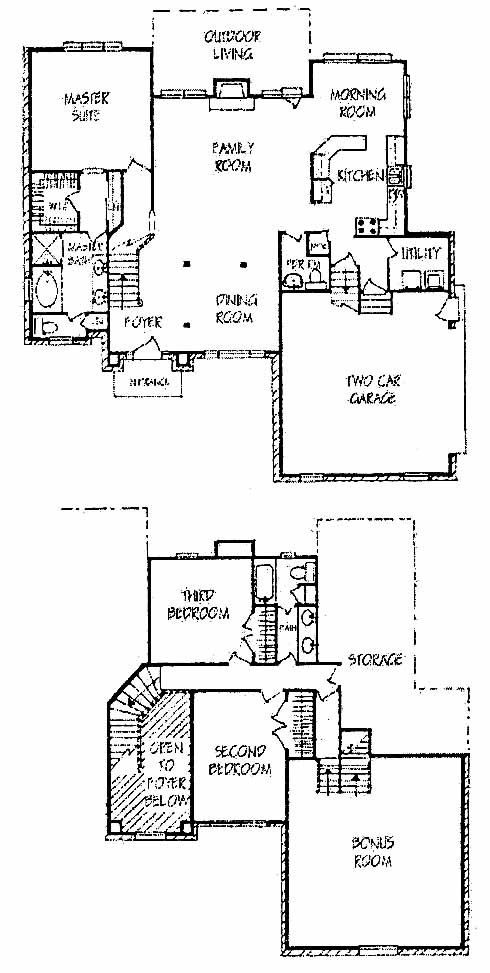 This home has a spacious family room with fireplace where everyone can gather on movie night. The dining room is located at the front of the home. The morning room leads to the kitchen with pantry and wrap-around counter. The first-floor master suite includes a walk-in closet and master bath with double vanity, tub and separate shower. The second floor has two more bedrooms, a shared bath and a bonus room.