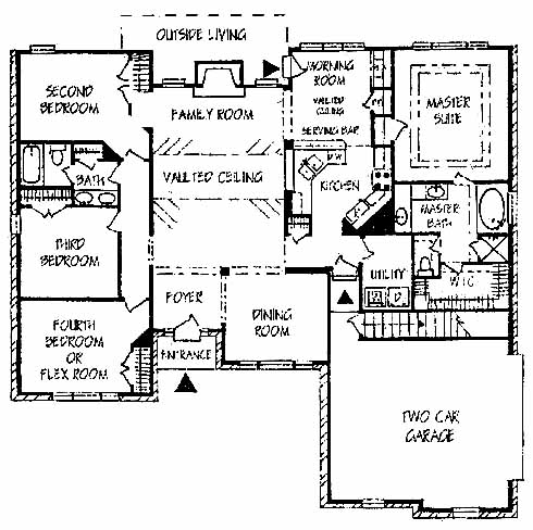 Formal dining room is located to one side of the foyer entrance. The family room with vaulted ceiling also includes a fireplace. The morning room leads to the kitchen with serving bar and pantry. The master suite includes a walk-in closet and master bath with double vanity, tub and separate shower. Three more bedrooms on the opposite side of the home share a bath.