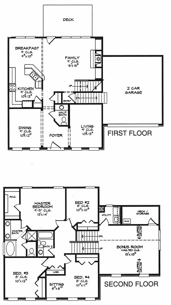 This open, airy plan has a sloped ceiling bonus room, living room, formal dining room, large family room with fireplace and a kitchen with wrap around work/eating area with a breakfast nook. There is also a side entry garage and guest bedroom with sitting area.