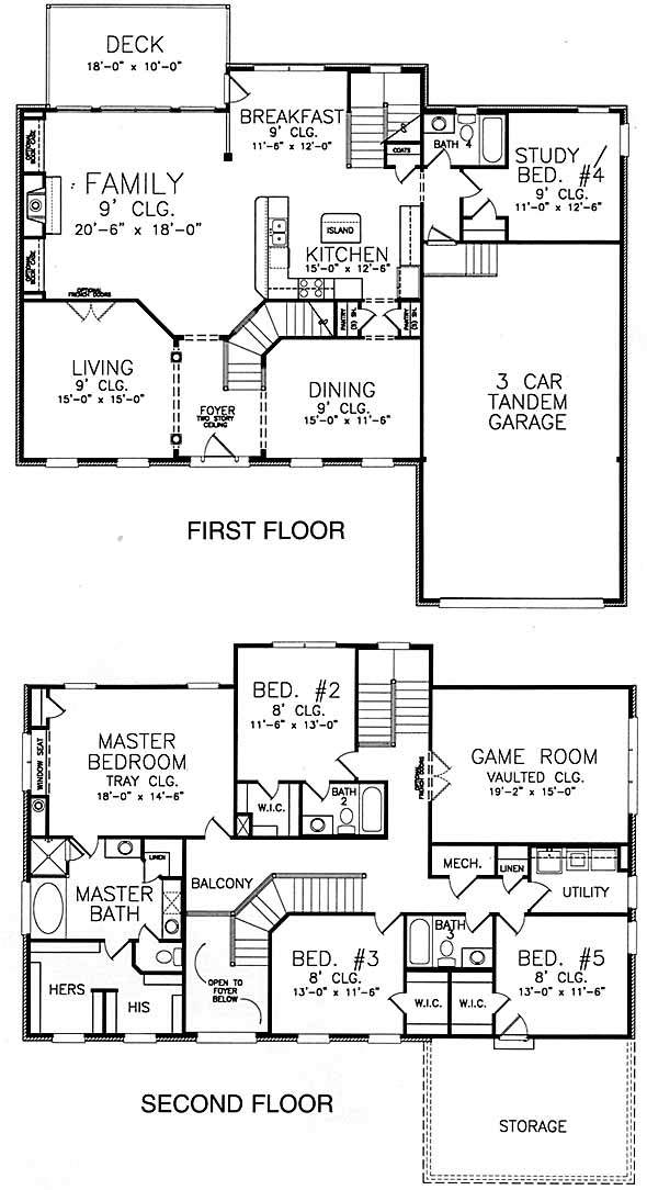 This home has a living room with columns, dining room, family room with fireplace, large eat-in kitchen with island and a study or optional bedroom downstairs. One of the two staircases is curved leading up from the two-story foyer. The master suite upstairs has tray ceiling and upstairs game room has a vaulted ceiling.