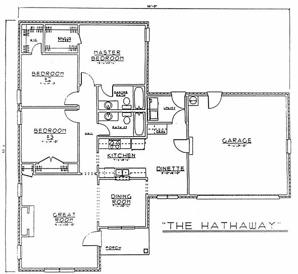 This 3BR/2BA home has a great room with fireplace, separate dining room, utility room and 2 car garage. The kitchen/dinette area is a t-shape plan with a work top desk with cabinets.