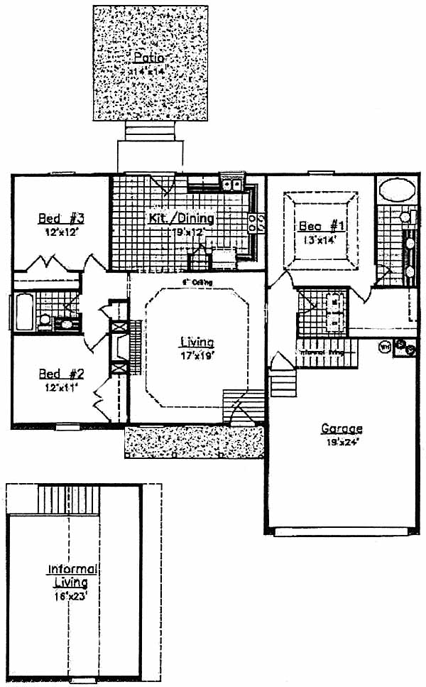 This home features a split-bedroom design. A 9' box ceiling, circle-top windows and a gas fireplace brings warmth to the living room. The master suite features trey ceiling, walk-in closet and a bath with garden tub and double vanities. The kitchen has eat-in dining and the additional bedrooms are isolated along with a bathroom off their own hallway.