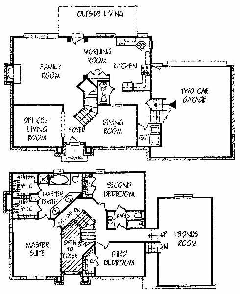 This home has formal living and dining rooms on either side of the foyer entrance. The family room with fireplace is nicely sized. The morning room has access to the outside living area while leading to the kitchen with ample counter space for preparing meals. The second floor has a large bonus room that makes a nice fitness area or office. The master suite includes his and her walk-in closets and a master bath with double vanity. Two more bedrooms share a bath.