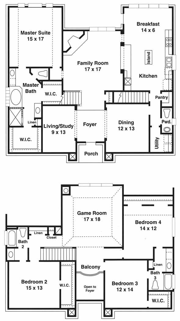 Dramatic 2 story foyer. 4BR/3.5BA formal living room or study, formal dining room, cozy family room with corner fireplace & large gameroom. Kitchen features a work center island and a pass thru bar to the family room. Master suite with his/her vanities, whirlpool tub, and 2 large walk-in closets.