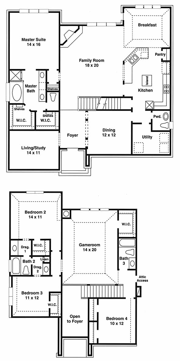 Open 2 story entry. Large family room with corner fireplace. First floor master suite with whirlpool tub, glass enclosed shower, his/her vanities, walk-in closets and ceramic tile. Kitchen with oak hardwood floors, corian countertops, microwave with built in venthood above cooktop, walk-in pantries and tile backsplash. Dining room, bonus room, living room or study, gameroom and balcony overlooking family room.