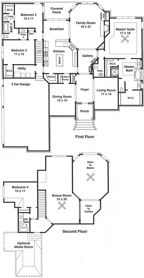 The 11' ceilings in the foyer, living and dining rooms make this an extremely spacious plan. The large kitchen and family room are flanked by the master suite and the 2nd and 3rd bedrooms. Upstairs you'll find the bonus room and 4th bedroom.