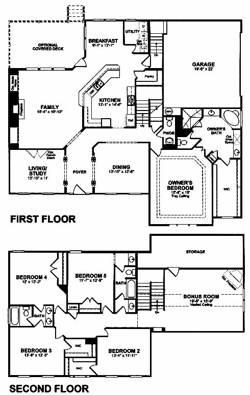 Formal living and dining rooms on either side of the foyer entrance. The family room has a fireplace and optional media niche available. The breakfast room has access to the deck while the kitchen that overlooks the area includes a walk-in pantry and ample counterspace for preparing meals. The first-floor master bedroom includes a tray ceiling, oversized walk-in closet and owner's bath with dual vanities, tub and separate shower. The second floor has four more bedrooms and two baths that offer plenty of space and privacy. The bonus room makes a nice game room.