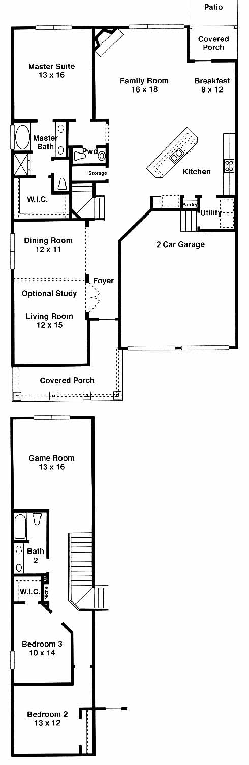 First-floor master suite includes a walk-in closet and master bath with vanity, tub and separate shower. Living and dining rooms to one side of the foyer entrance welcome guests. The family room with fireplace is sure to be a popular gathering spot on chilly nights. The kitchen and breakfast rooms overlook the family room and provide an open feel to the home. The second floor has two more bedrooms, a shared bath and a game room. An optional bonus room is available.