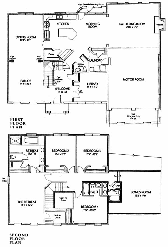Spacious gathering room with designer windows, cozy fireplace and convenient second staircase option. Charming morning room and deluxe kitchen with convenient breakfast bar. Private library with optional french doors. Elegant owner's retreat features luxury bath. Three additional bedrooms, two full baths and bonus room on second floor.