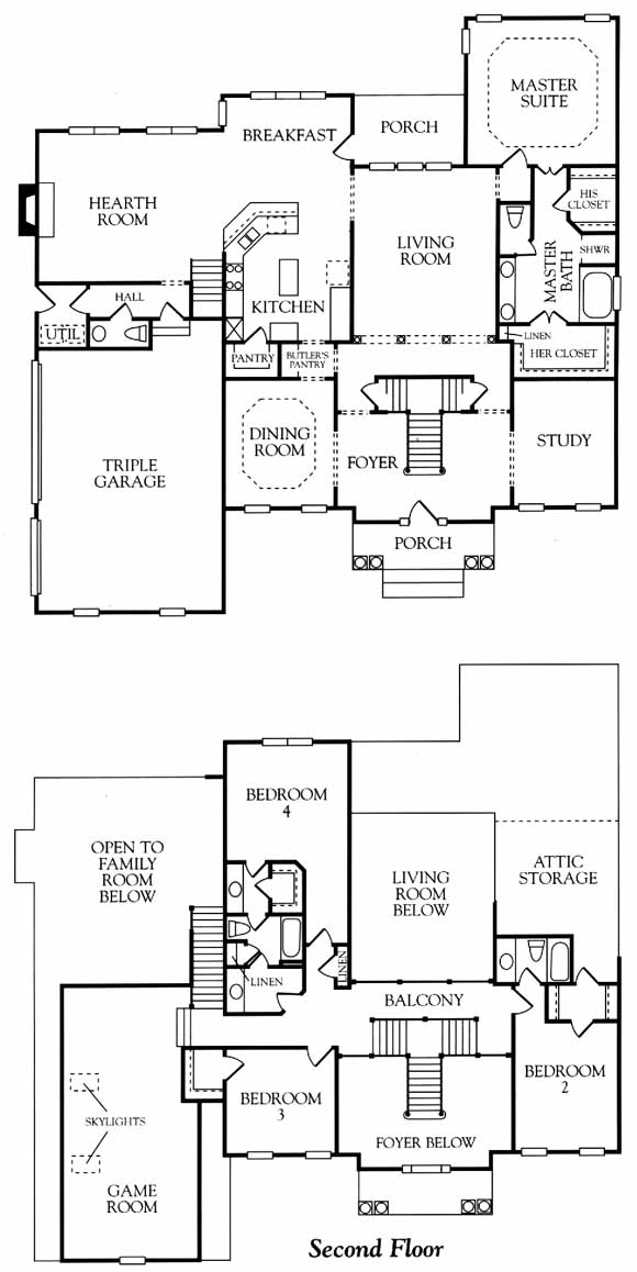 This home is designed to back up to the golf green. Lovely windows in the master suite downstairs, kitchen with breakfast room and den let in the lovely view! A dramatic foyer and balconies add elegance along with a back staircase for added convenience from the hearth room to the upstairs.