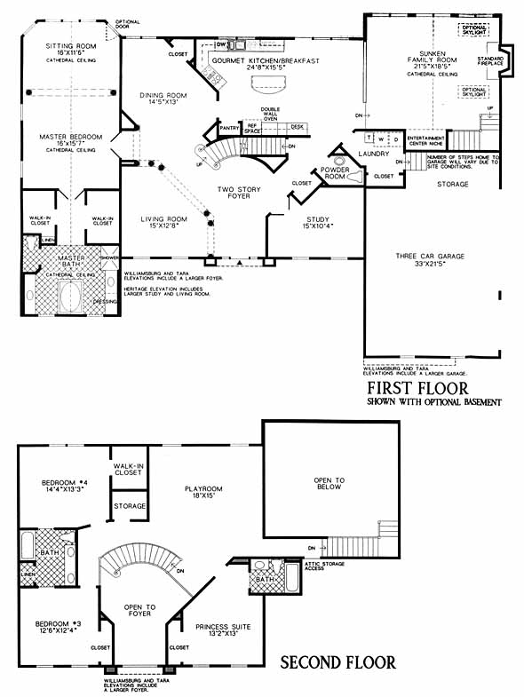 Dramatic 2 story foyer, first floor master suite, 9' ceilings. curved staircase in foyer/back staircase, cathedral ceiling in great room, 3BR/2full BA's, playroom on second level.