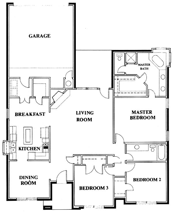 This is a very open floor plan. Spacious island kitchen that overlooks the breakfast nook, and a covered porch. Large living room with a fireplace. Roomy master suite with a walk-in closet in the master bath.