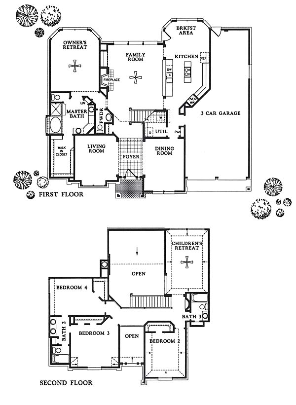 Solid wood front entry doors lead you in to this dramatic two story home. Decorative wrought iron mail boxes and cast stone address number block.