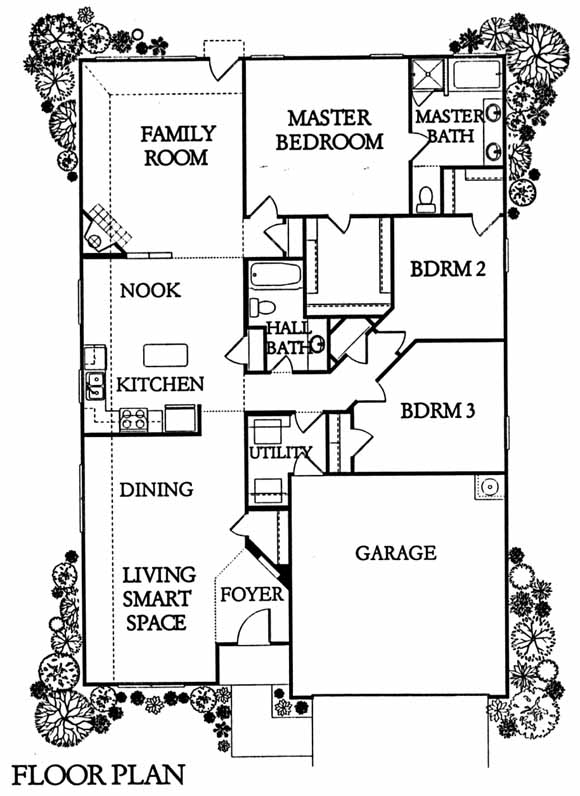 Single story home with stainless steel, full surround tile hall bath tub. Quality kitchen and bath faucet fixtures and walk-in laundry rooms with storage rod and shelf.