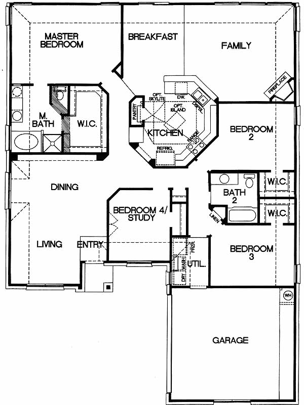Great functional floorplan with front door on the side that opens to the family room to the dining area and island kitchen.