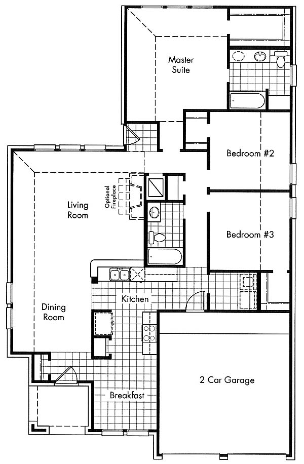 Immediately on you right as you enter the home is the tiled kitchen with breakfast nook and pantry. Next is the dining and living room with optional fireplace. From the living room you can access the 2nd and 3rd bedrooms, hall bath and the master suite and bath with walk-in closet.