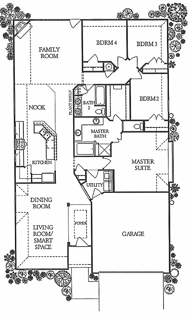 This home is provided with coach lights on the sides of the garage. Garage interior is painted so you don't have to. Customer's choice of three fireplace designs in the family room. Kitchen with nook area.