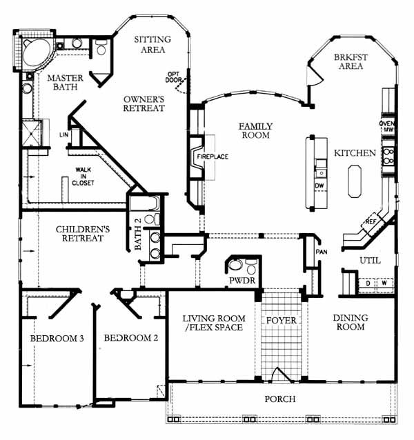 A home many options! The foyer entry goes into a big family room, huge island gourmet kitchen with big breakfast area, children's retreat and an unusually big owner's retreat with bayed sitting area to finish the luxury!