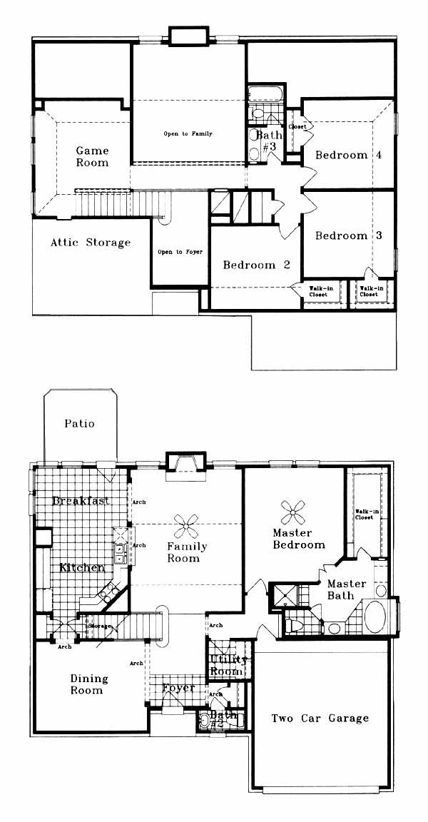 This two story features a main level Master bedroom and bath with walk-in closet, family room, kitchen with breakfast area, formal dining room and utility room. Upstairs you will find three additional bedrooms and a game room with a hallway that is open to the family room below! Plus lots of added storage space.
