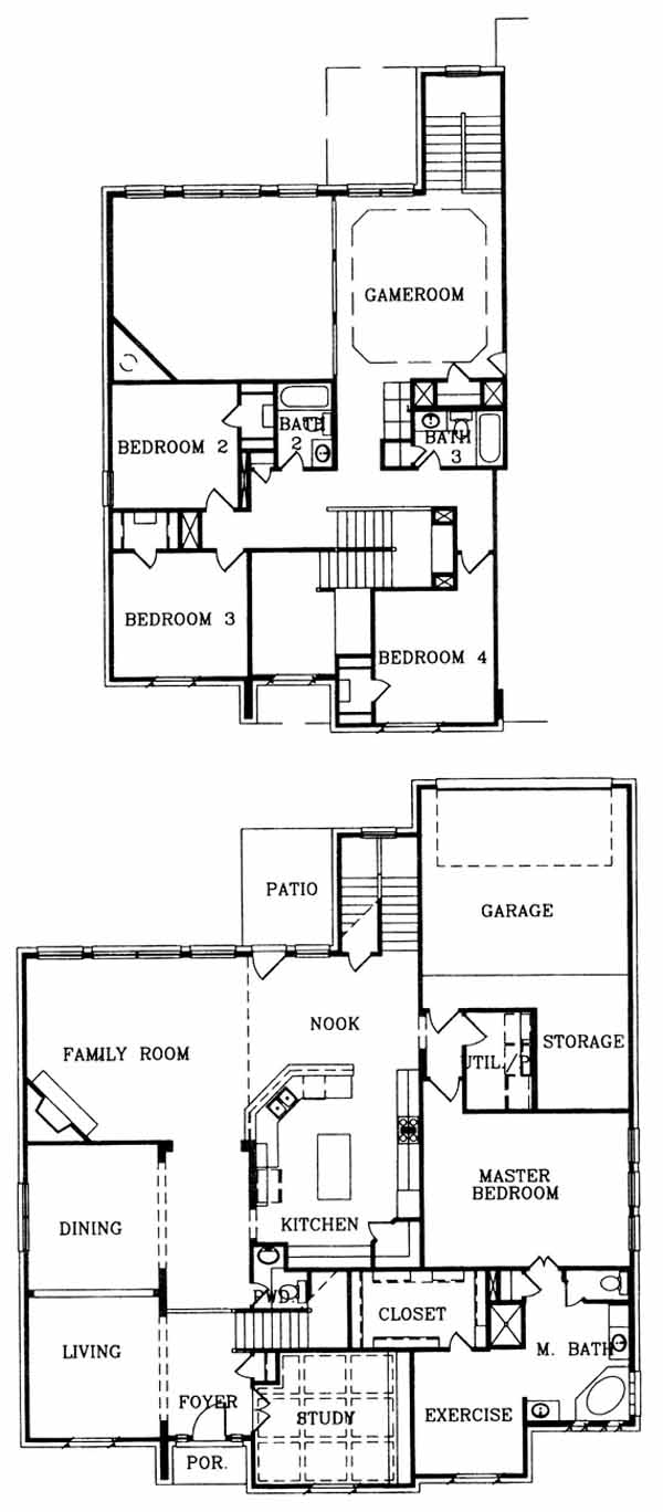 You'll enter the home through the foyer past the study and living and dining room area. As you move down the hall you'll come to the large family room. Open to the family room is the kitchen with island, wrap around counter and breakfast nook. From here you can access the master bedroom and bath with walk-in closet and exercise area. Upstairs you have the 2nd, 3rd and 4th bedrooms, 2 hall baths and game room.