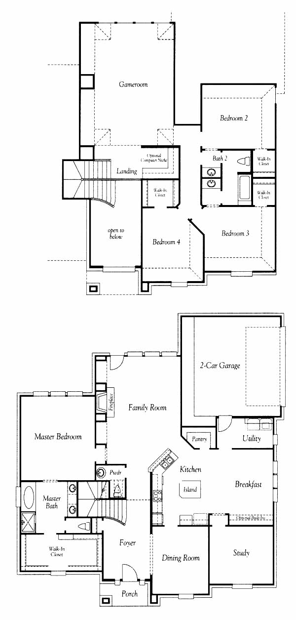 As you enter the home you'll pass the dining room and powder room on your way to the large family room with fireplace. Open to the family room is the kitchen with island, pantry and breakfast nook. From the family room you can also access the master bedroom and bath with walk-in closet and dual vanities. On the second floor you have the 2nd and 3rd bedrooms with Jack and Jill bath, 4th bedroom and game room.
