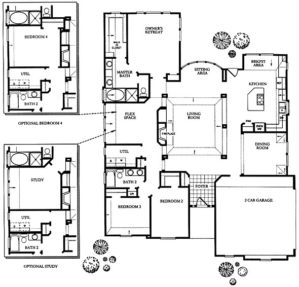 Central family has access owner's retreat, sitting area looking out to back yard, large island kitchen and breakfast area, formal dining, and 2 bedrooms.