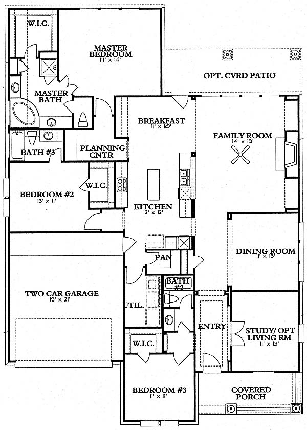 As you enter the home you'll pass the 3rd bedroom with bath, study and dining room on your way to the large family room with fireplace. Open to the family room is the kitchen with island and breakfast area. From here you can access the 2nd bedroom with walk-in closet and the master bedroom and bath with tub, shower and walk-in closet.
