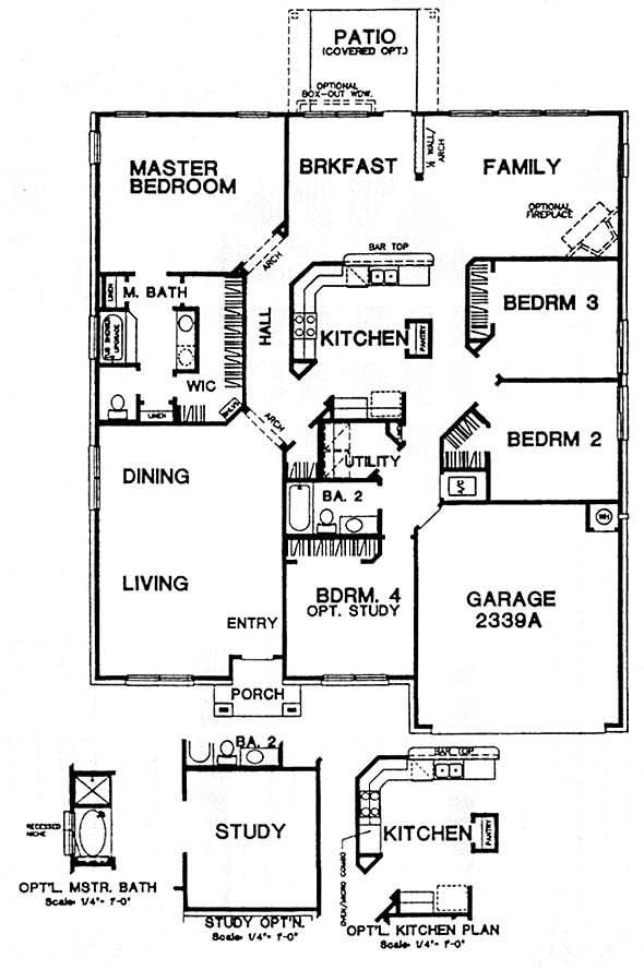 Single level 4 bedroom home. 4th bedroom can be study (option). 2 living and 2 dining areas. Large kitchen is open to breakfast and family room. Split bedrooms assure privacy at master suite.