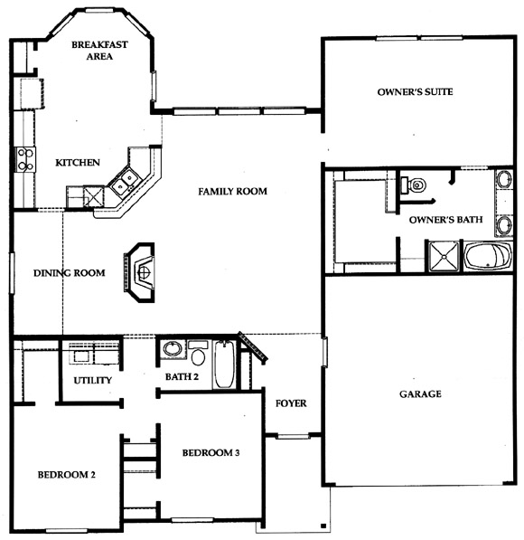 One story home with a dining room opening to the spacious living area, beautiful kitchen with a service bar overlooking the living room.
