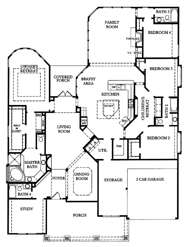 As you enter the home immediately on your left is the study with bath. To your right is the dining room. Next is the large living room with access to the covered porch. The living room also access's the impressive owner's retreat and bath with walk-in closet, tub and shower. The kitchen features an island, wrap around counter and breakfast area. The kitchen is open to the family room with fireplace and TV space. From the family room you can access the 2nd and 3rd bedrooms with Jack and Jill bath and the 4th bedroom with bath. This truly is a beautiful home.