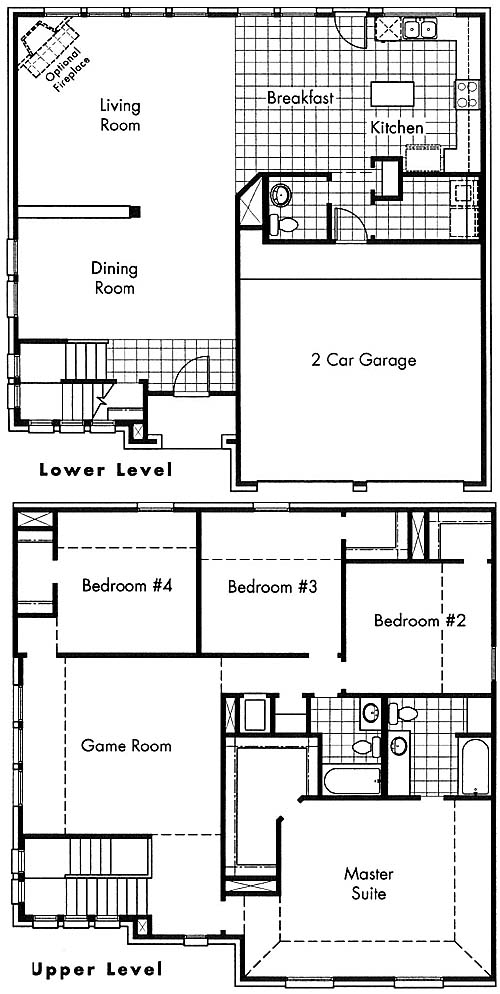 As you enter the home you'll walk through the dining room and enter the living room with optional fireplace. Open to the living room is the tiled kitchen with island, wrap around counter, breakfast nook and access to the powder room. On the second floor you have the 2nd, 3rd and 4th bedrooms, hall bath, game room and the massive master suite and bath with walk-in closet.