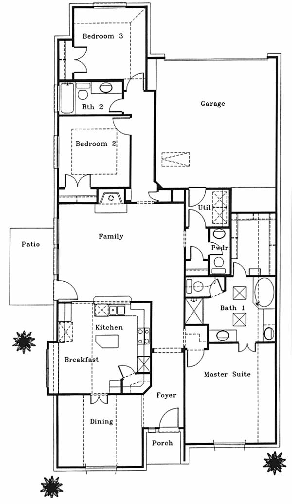 One story. Master Bedroom downstairs. Standard finish out includes ceramic tile entry floor, kitchen/breakfast nook. Custom ash cabinets, security system, sprinkler system, full sod, fenced yard and landscaping, automatic garage door opener, wallpaper in kitchen, breakfast and master bath, marble tub.