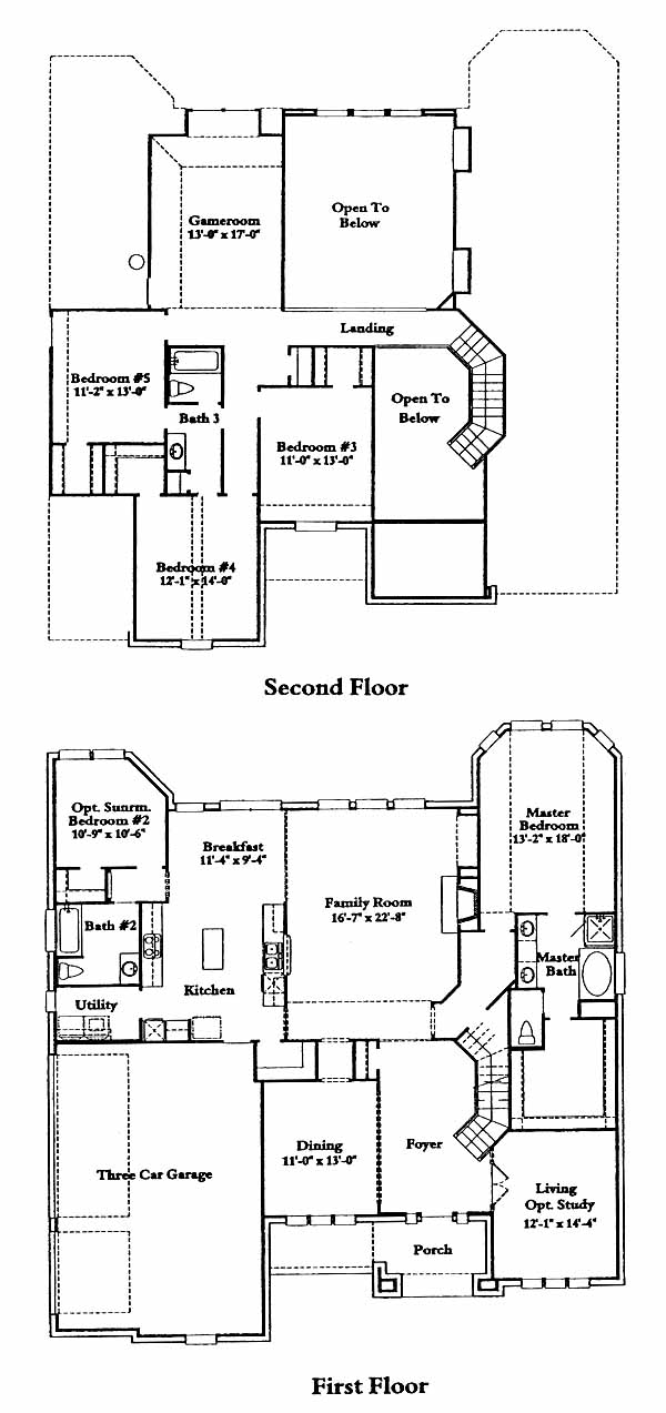As you enter the home you'll pass the dining and living room on your way to the family room. To your right is the massive master bedroom and bath with walk-in closet and dual vanities. Open to the family room is the kitchen with pantry, island and breakfast nook. Also from the kitchen you can access the optional sun room with bath. On the second floor you have the 2nd, 3rd and 4th bedrooms, hall bath and game room.
