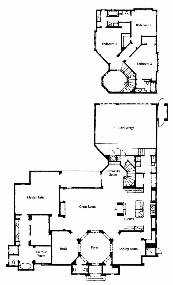 The stunning foyer leads you into this impressive house past the study and dining room to the gorgeous great room with fireplace. To your left you can access the massive master suite and bath with walk-in closet and an exercise room. Open to the great room is the large kitchen with island, pantry and spacious breakfast room. Upstairs you have the 2nd bedroom with bath and the 3rd and 4th bedrooms with Jack and Jill bath.