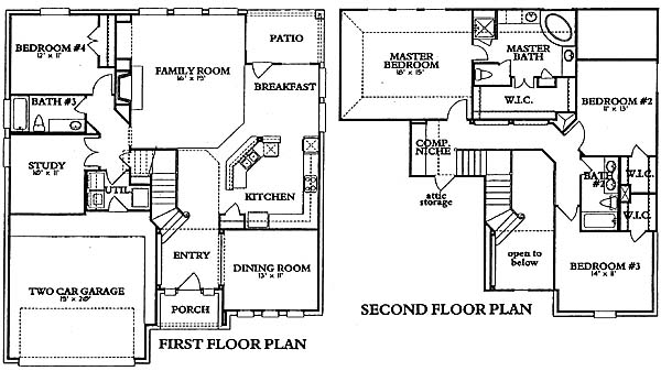 When you enter the home you'll pass the dining room and on your right on your way to the large family room with fireplace. To your left is the study, 4th bedroom and hall bath and to your right is the kitchen with breakfast area and access to the patio. Upstairs you have the 2nd and 3rd bedrooms, hall bath, computer niche and the massive master bedroom and bath with walk-in closet.