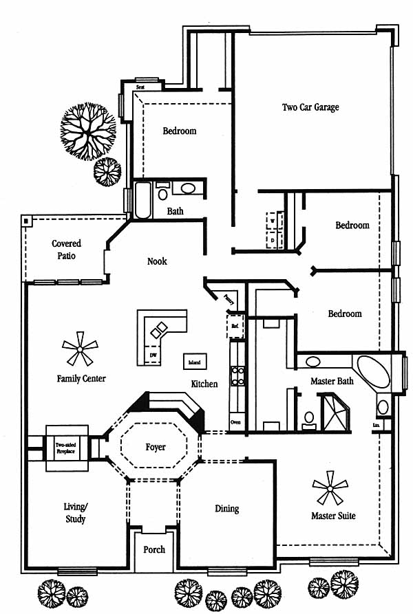 One story, dramatic foyer, see through fireplace. Large family center, separate fourth bedroom with complete bath, great guest room or home office.