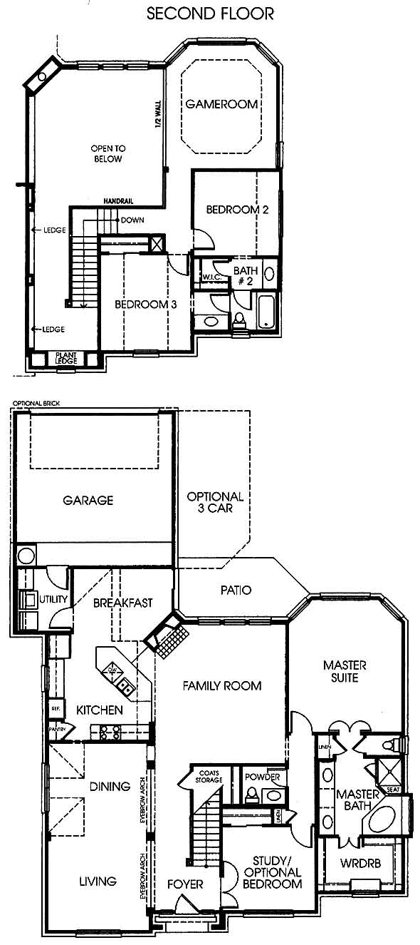 Beautiful custom home, large master suite with huge wardrobe room, study. Upstairs features 3 bedrooms, gameroom. Optional 3 car garage.